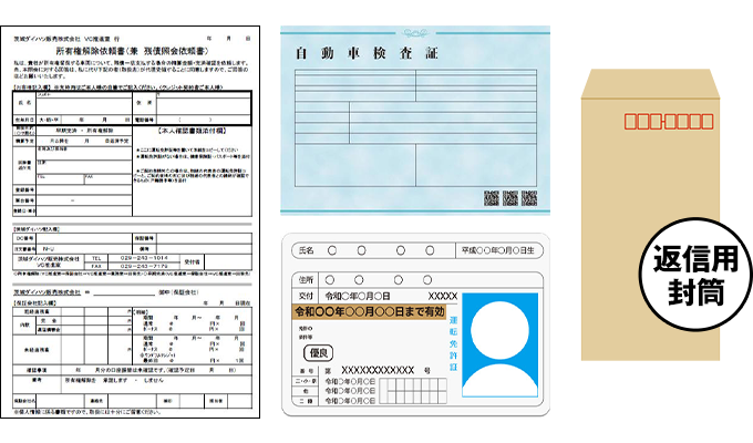 返信用切手を貼付けした封筒・レターパック・着払い伝票等を同封してください。