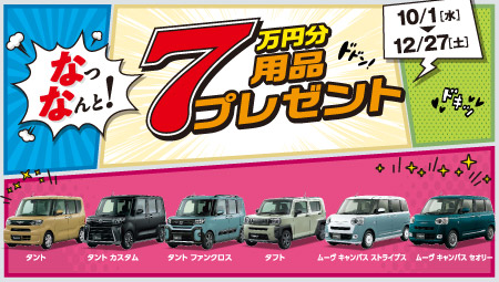 用品7万円プレゼントキャンペーン