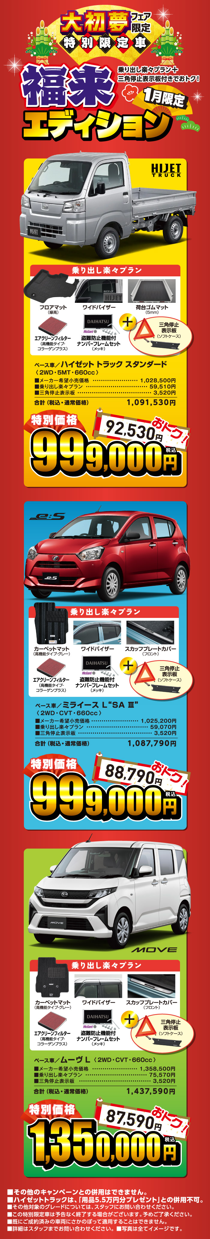 ハイゼットトラック・カーゴ「純正用品5.5万円分プレゼント」