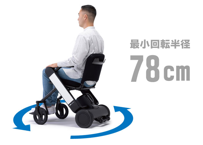 半径78cmの小回りを実現。エレベーターの中でも一周をすることができます。