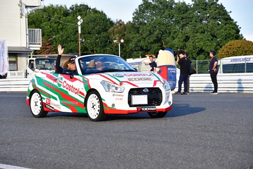 当日は、ダイハツ工業様のご協力でD-SPORT Racingチーム監督の殿村さん、ドライバーの相原さん、コ・ドライバーの上原さん他、チームのメンバーに駆け付けて頂き、トークショーや同乗走行体験、大抽選会を開催して頂きました。実は、私もコペンの同乗走行の体験を致しましたが、寿命が長くはないのに、お陰様でますます短くなった気がした体験でした~!!(笑)