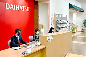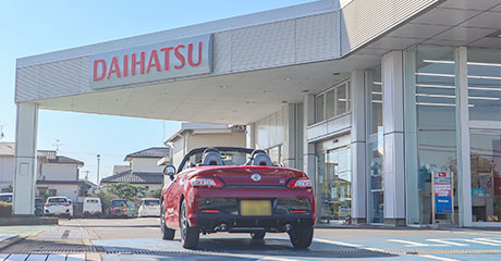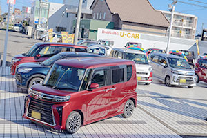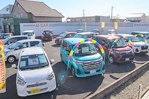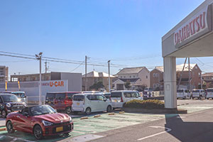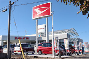 当店はJR勝田駅前の昭和通りを、国営ひたち海浜公園に向かう通り沿いにございます。大きなダイハツの看板が目印です。