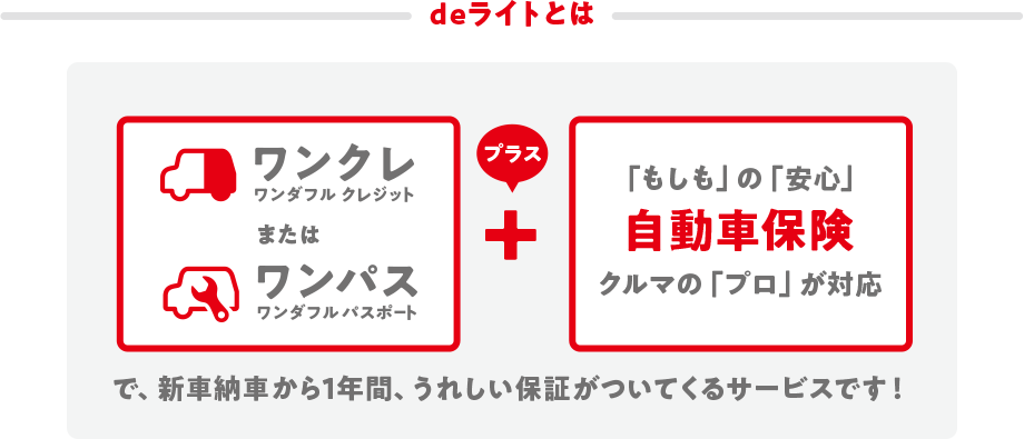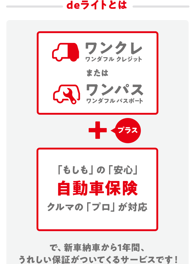 - 本サポートは、納車日時点で「自動車保険」と「ワンダフルパスポート」にご加入いただいているお客様、または納車日時点で「自動車保険」にご加入いただいており、「ワンダフルクレジット(ワンダフルツイン含む)」で新車を購入されたお客様が対象となります。