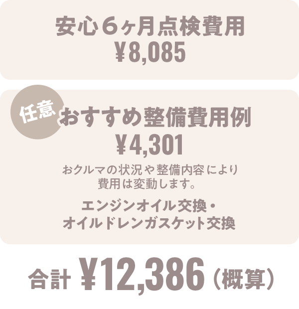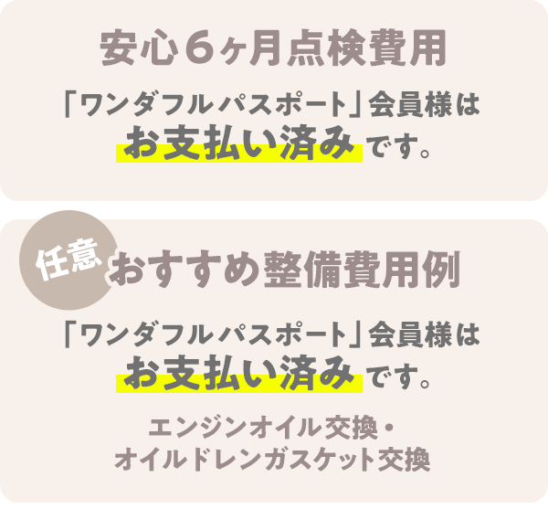 追加の整備費用、部品・オイル類の交換費用は別途申し受けます。