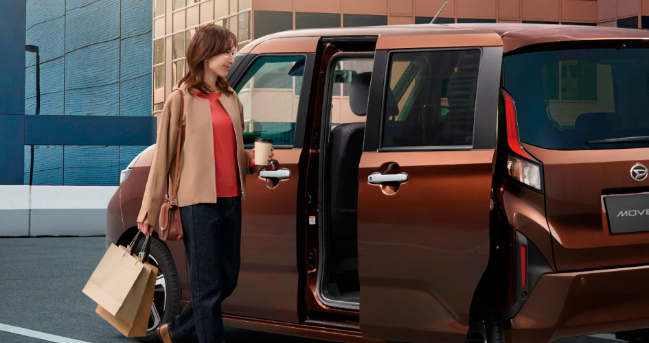 ついにムーヴがパワースライドドアを搭載。ゆとりある開口部で、大きな荷物を持って乗り降りするときも快適。