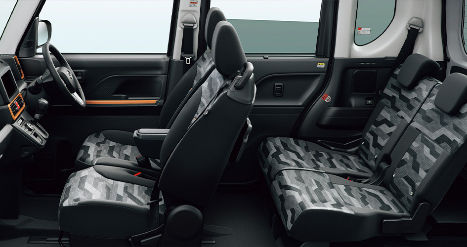 ①防水加工シートバック(後席) 濡れた荷物も気にせず載せられる。